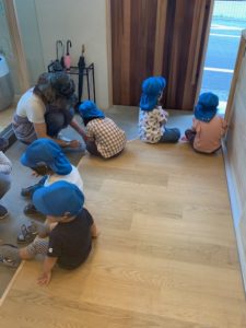 園児さんたちはお散歩の準備も自分で出来るようになってきました。