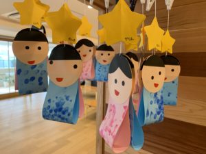 お父さん、お母さんと一緒に笹に飾り付けしました。