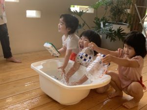 最初はおそるおそる水に触れていた子供達も、じょじょに全身で水に触れて楽しんでいましたよ♪