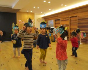 鬼は外~♪福は内~♪園児さんたちも鬼のお面を付けて楽しみました(*^-^*)