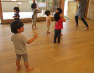 こんにちは。藤が丘にじのこども保育園です。 今日の午前中はお部屋で、体操やダンスをしました♪ 先生がエビカニクスを踊るのをじっと見つめる子どもたち… 踊ってくれないのかな?と思いきや、 最後の決めポー …