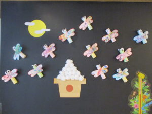 園の壁にもとんぼが飛んでいますよ。