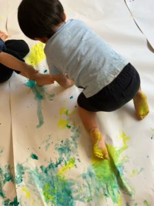手や足に好きな色の絵の具をつけて、ペタペタペタペタ!