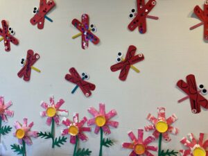 好きな物をペタペタしたり、模様をペンで描いたりしてみた赤トンボ。
