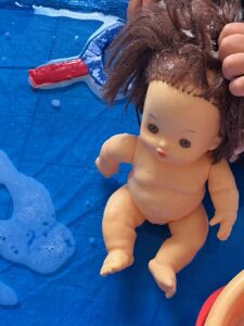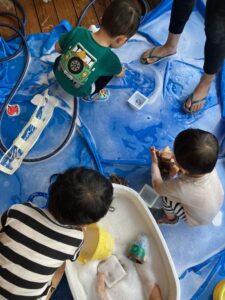 この日は、屋根のあるウッドデッキで泡遊び♪